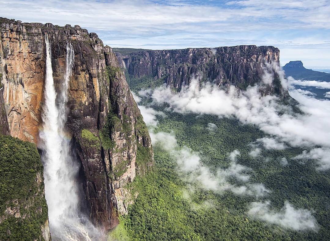 Sobrevolando la selva venezolana para admirar el Salto Ángel, la cascada más alta del mundo con 979 metros de caída libre.